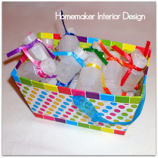 | Voila! Gift bags. I made personalized tags and tied each bag with the rainbow ribbons. |